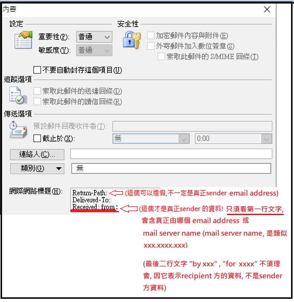 ¯u¥¿ªºsender, ¨ä¹ê¥i¥H³z¹L¬Y¨Ç¤u¨ã, ¦Û¦æ¬d¨ìªº, ¨ä¤¤¤@ºØ§K¶Oªº¤èªk, ¬O¦pªG±z³z¹Loutlook ¦¬¶l¥ó, ±z¥i¥H«ö¥H¤U¤èªk¬d¬Ý: